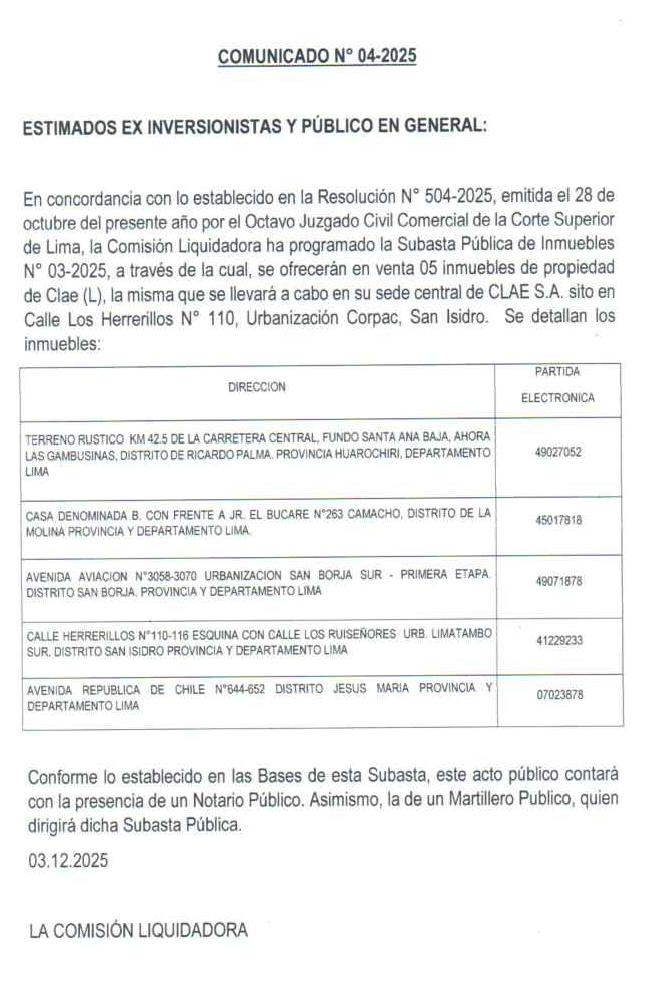 Primero. – Declarar la disolución de la Empresa Centro Latinoamericano de Asesoría Empresarial Sociedad Anónima – CLAE-; y,